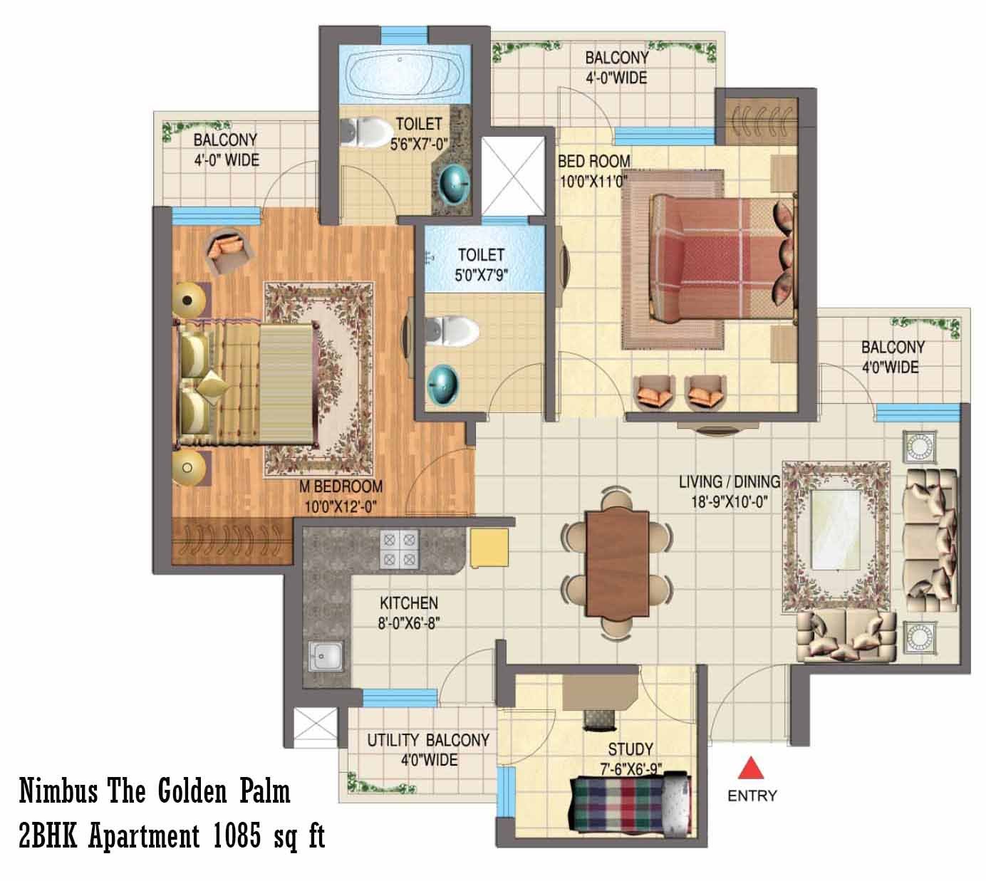 | 2 BHK - 1085 Sq. Ft. | 1085 Sq. Ft. (Saleable) | 60.06 Lac |